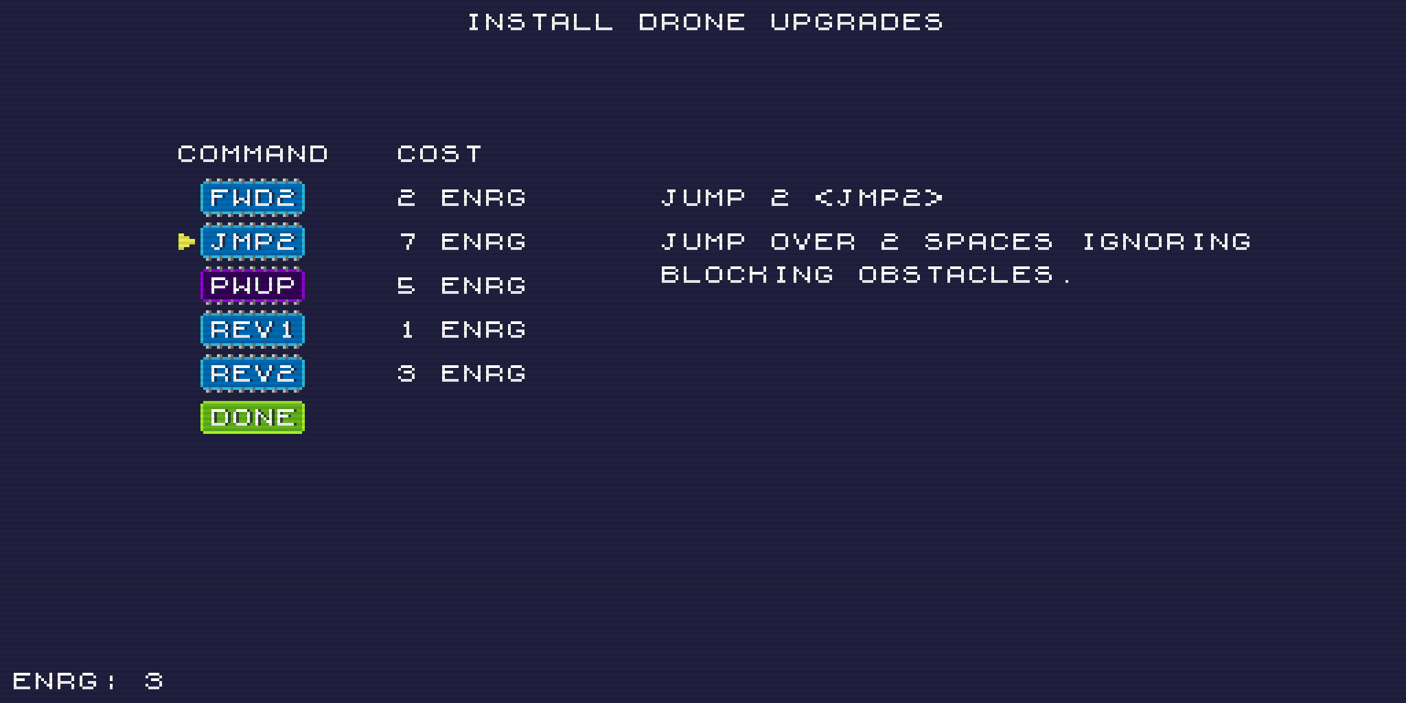 Instead of controlling your drone directly, you must "program" it using five registers each turn. Each register is then executed in order.